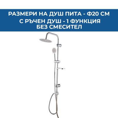 Погрижете се за функционалността и комфорта в банята като изберете душ система VERONA. Душ системата се откроява с голяма здравина и стилен дизайн. Комплектът включва ръчен душ с 1 функция, изработен от ABS материал, шлаух и сапунерка. Душ питата е кръгла, в цвят хром с диаметър - 20 см. Душ система VERONA успешно съчетава стилен дизайн, високо качество, практичност и изключителна здравина.