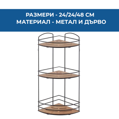 ЕТАЖЕРКА ЪГЪЛ ЧЕРНА БАМБУК 3 НИВА 24/24/48СМ - 87692