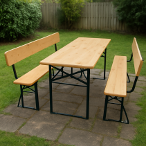Дървените градински мебели са предпочитани заради естествения си външен вид, който пасва много добре на екстериора. Дървените мебели изискват редовна поддръжка и почистване, за да могат да се използват по-дълго време.