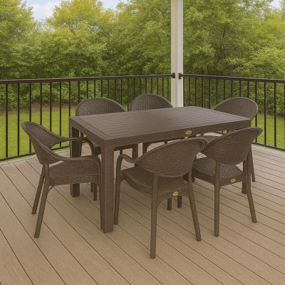 Градински комплект PVC Bambu – маса 90 × 150 см + 6 стола, кафяв